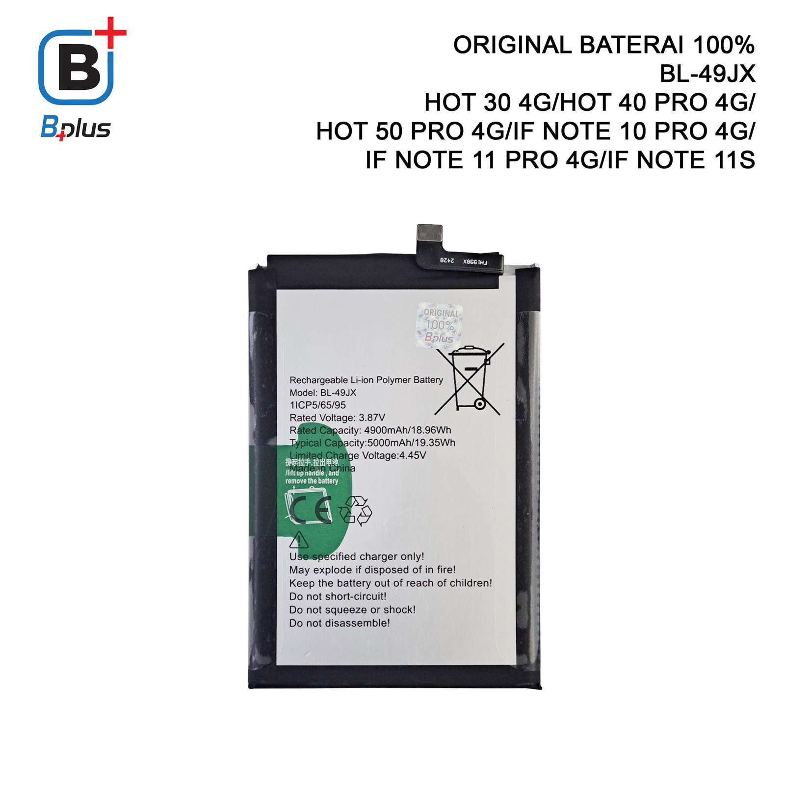 BATERAI INFINIX BL-49JX /HOT 30 4G/HOT 40 PRO 4G/HOT 50 PRO 4G/IF NOTE 10 PRO 4G/ IF NOTE 11 PRO 4G/IF NOTE 11S ORIGINAL BPLUS 100%