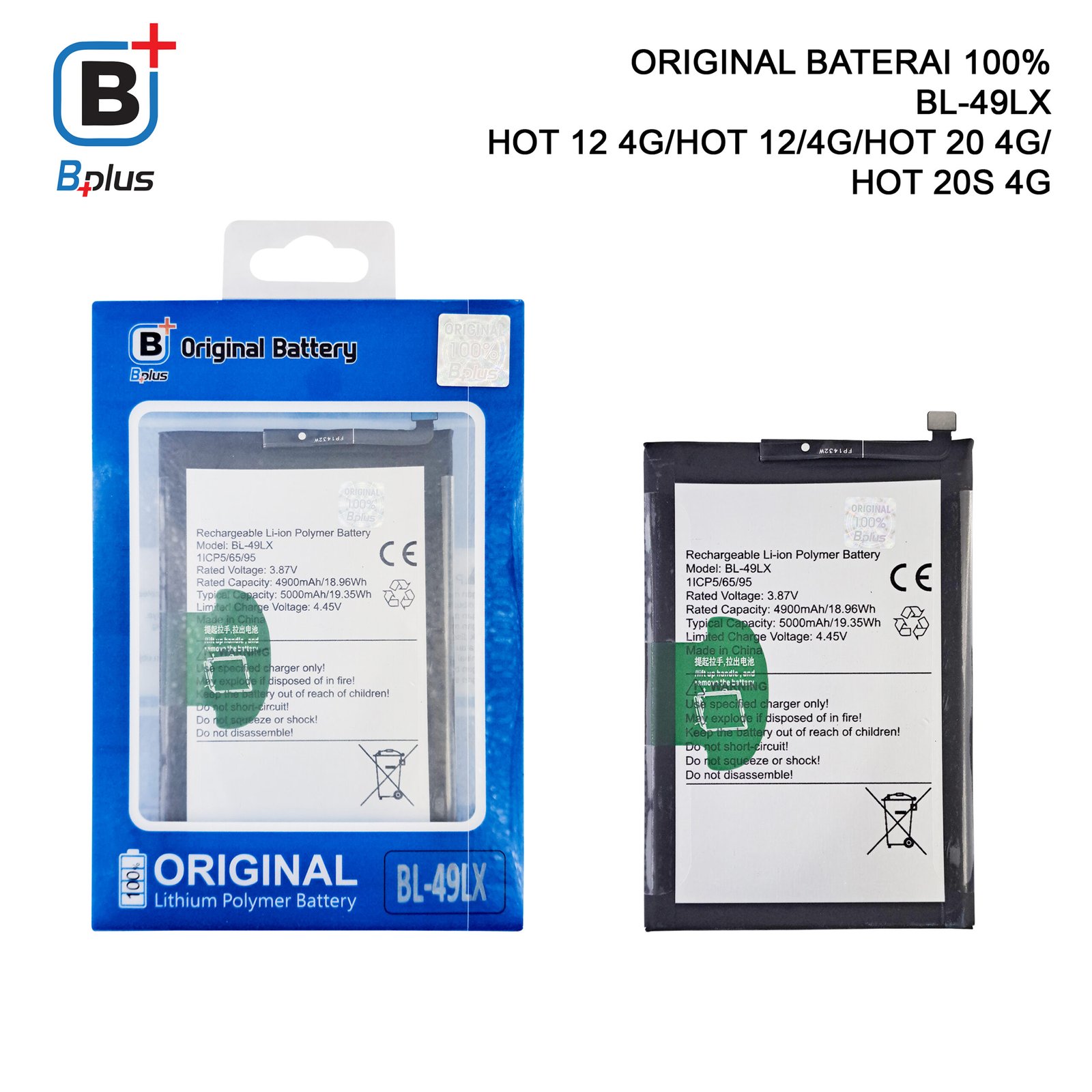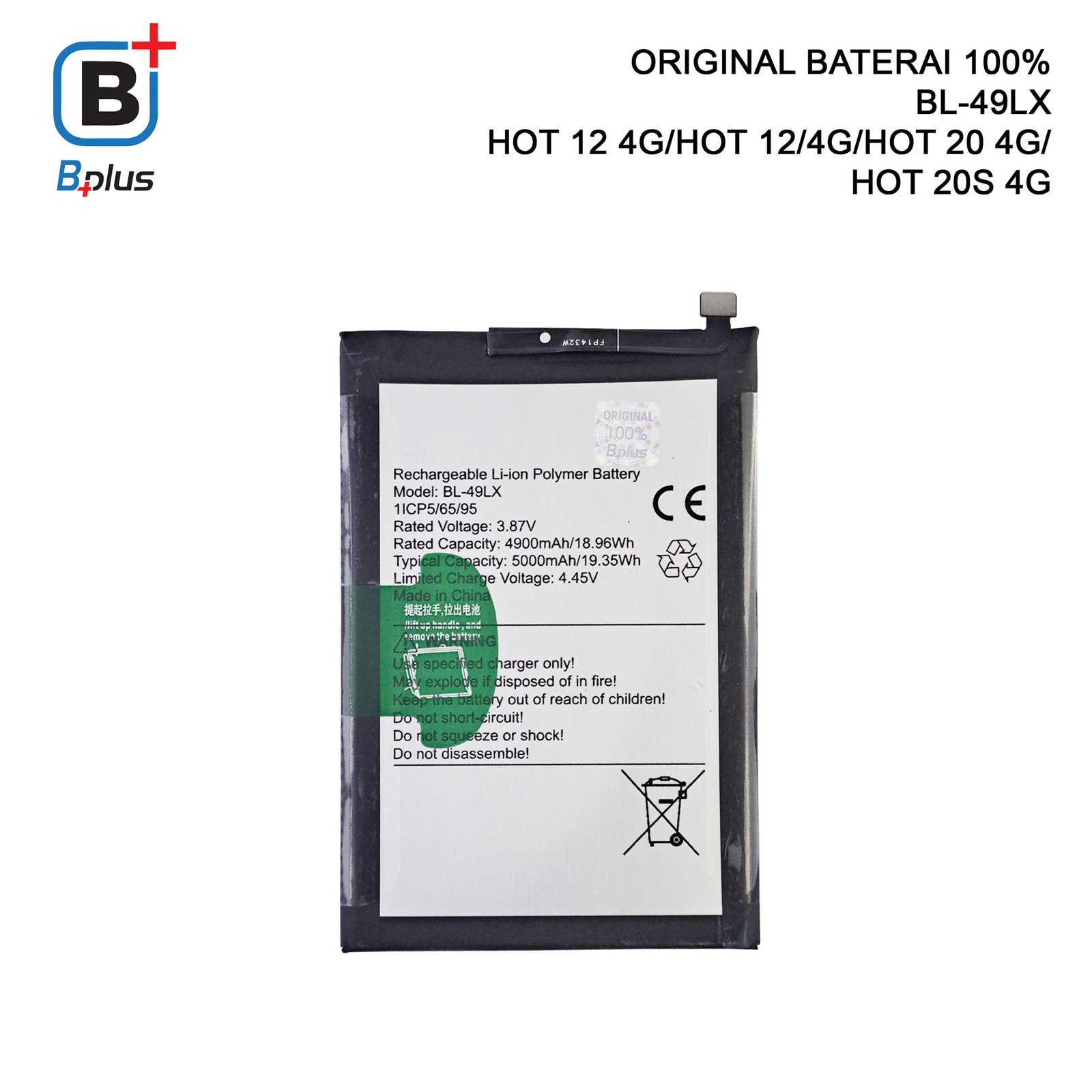 BATERAI INFINIX BL-49LX /HOT 12 4G/HOT 12/4G/HOT 20 4G/ HOT 20S 4G ORIGINAL BPLUS 100%