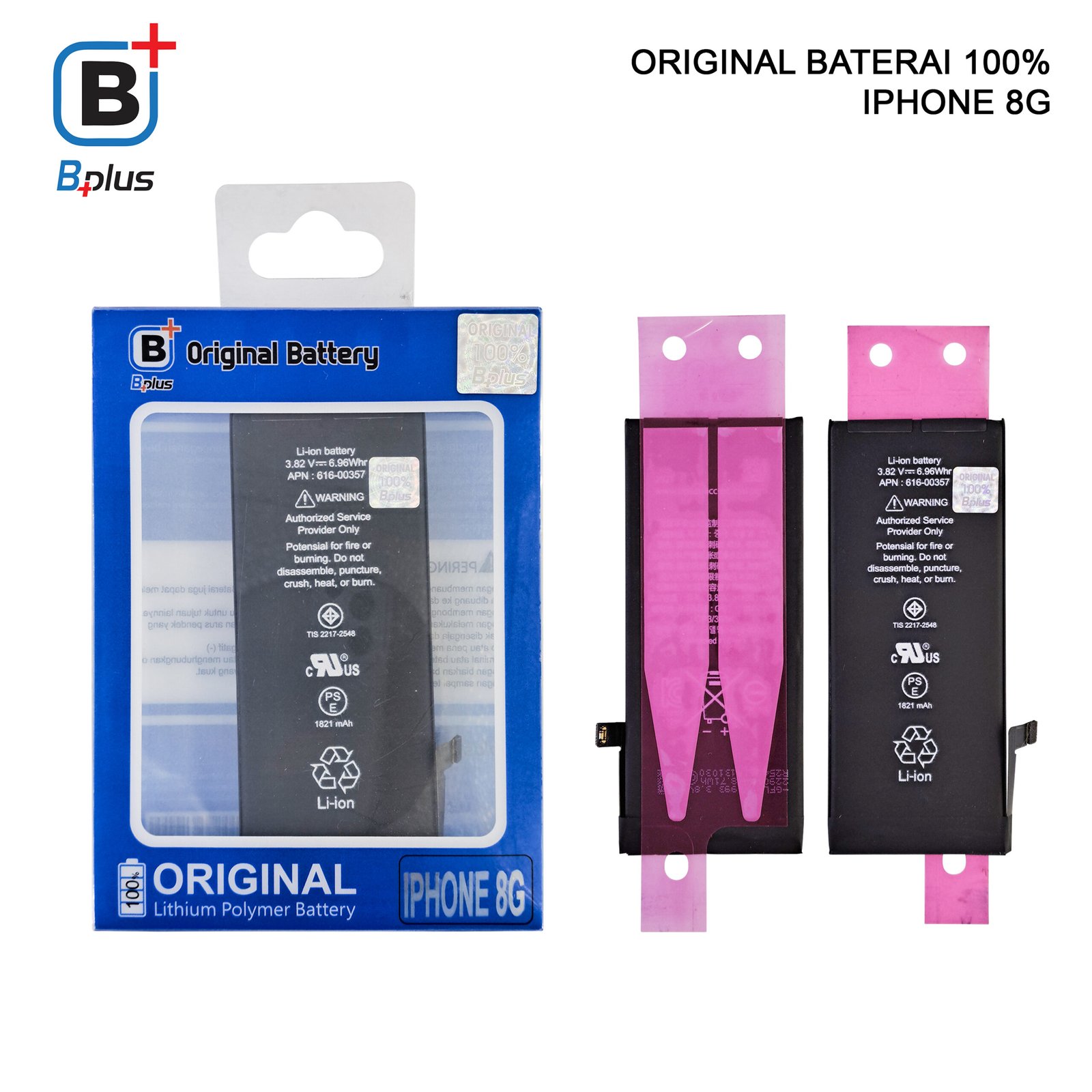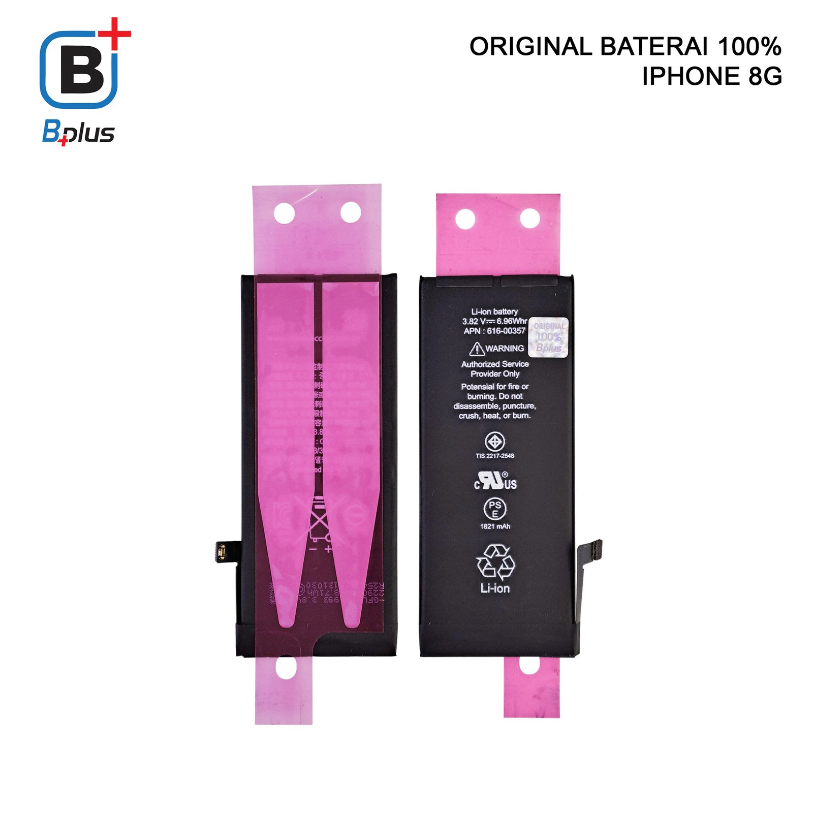 Dapatkan kualitas premium dengan garansi resmi hanya di BPLUS 1821mAh Premium Baterai Double IC Power for iPhone 8G.