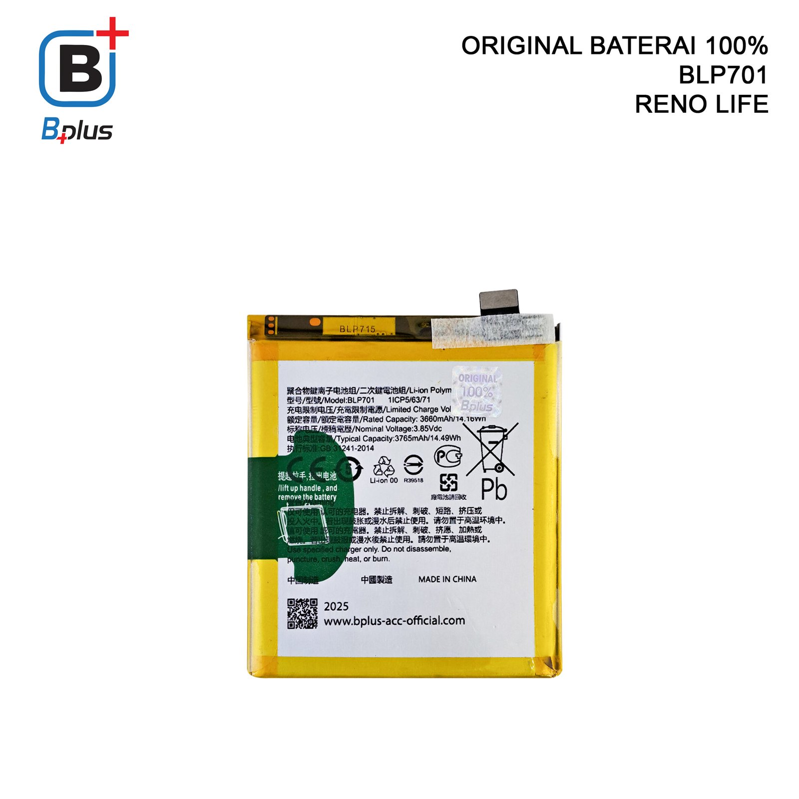BATERAI OPPO BLP701 /RENO LIFE ORIGINAL BPLUS 100%
