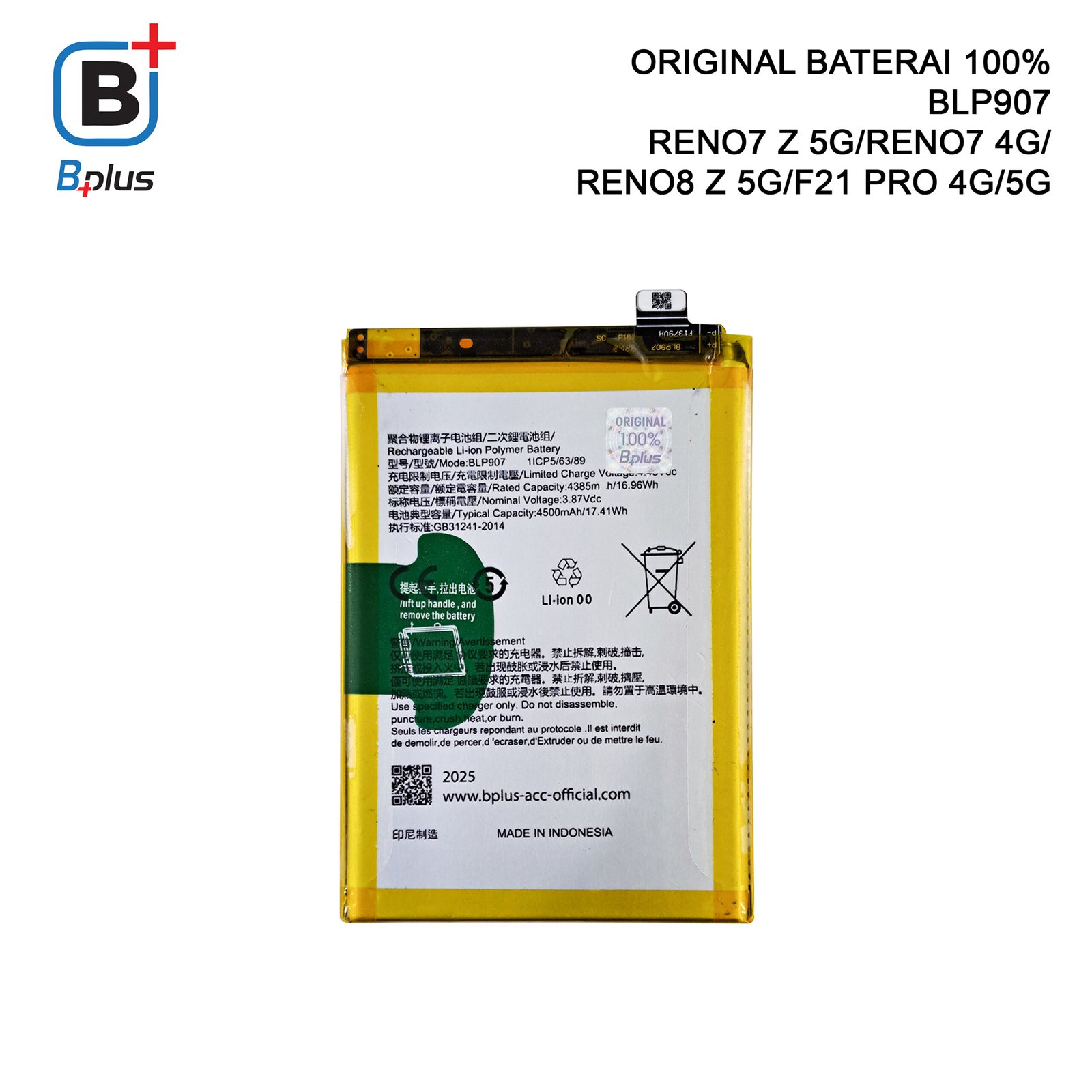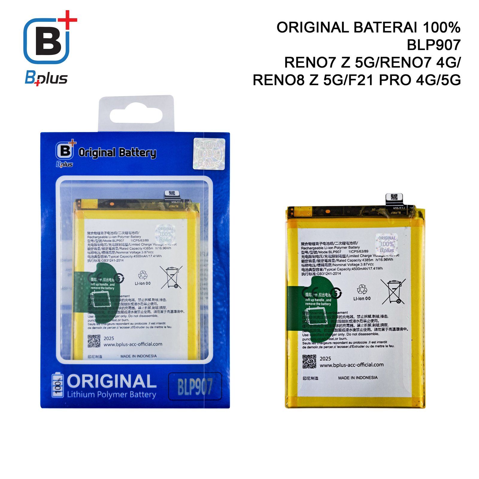 – Baterai OPPO BLP907 / RENO7 Z 5G/RENO7 4G/ RENO8 Z 5G/F21 PRO 4G/5G