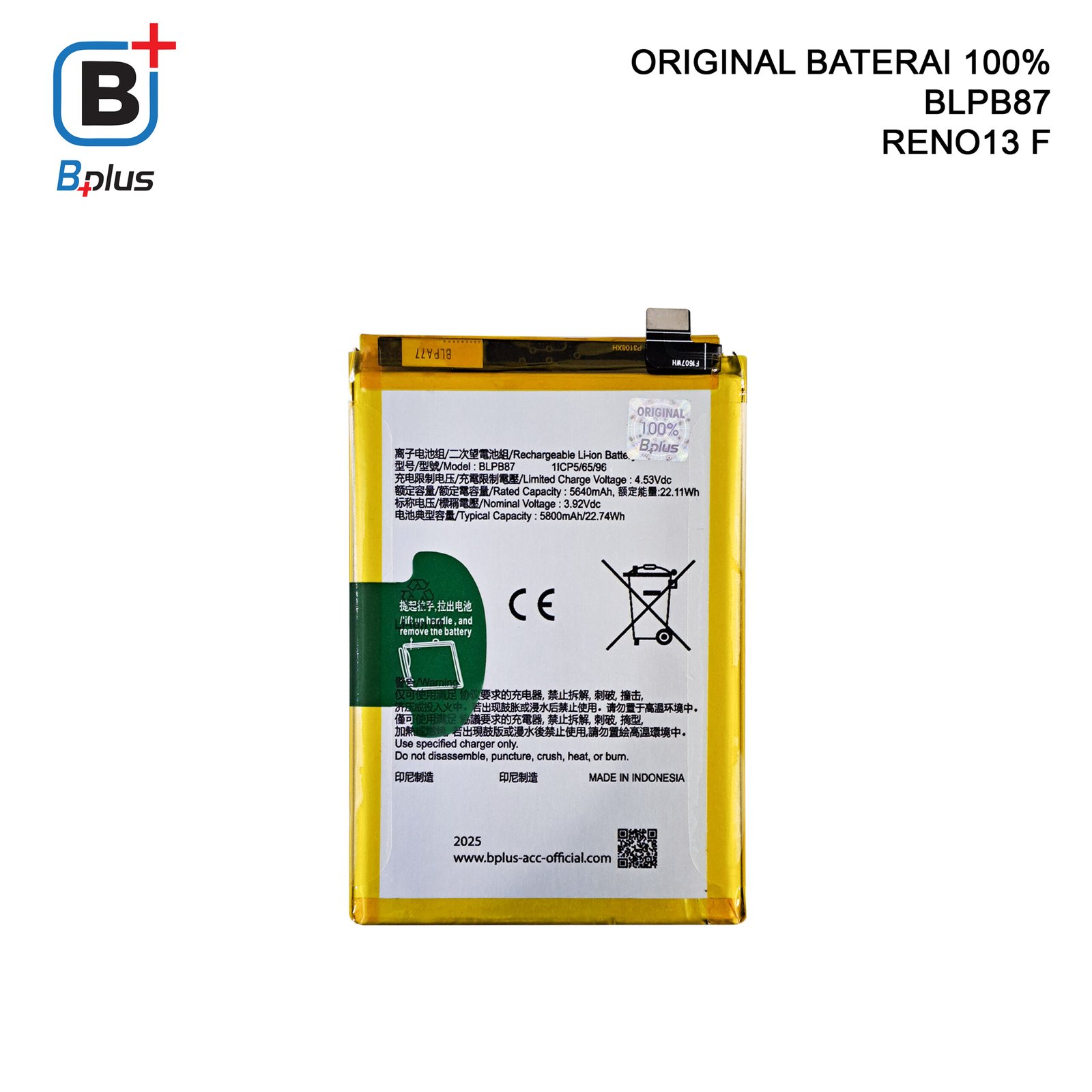BATERAI OPPO BLPB87 / RENO13 F ORIGINAL BPLUS 100%