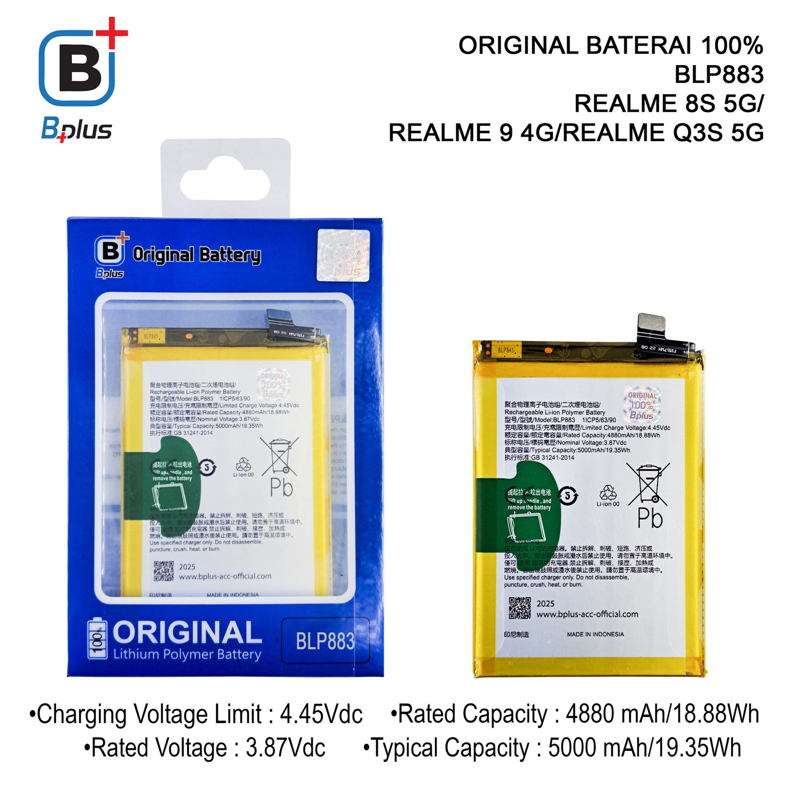 – Baterai REALME BLP883 REALME 8S 5G/ REALME 9 4G/REALME Q3S 5G
