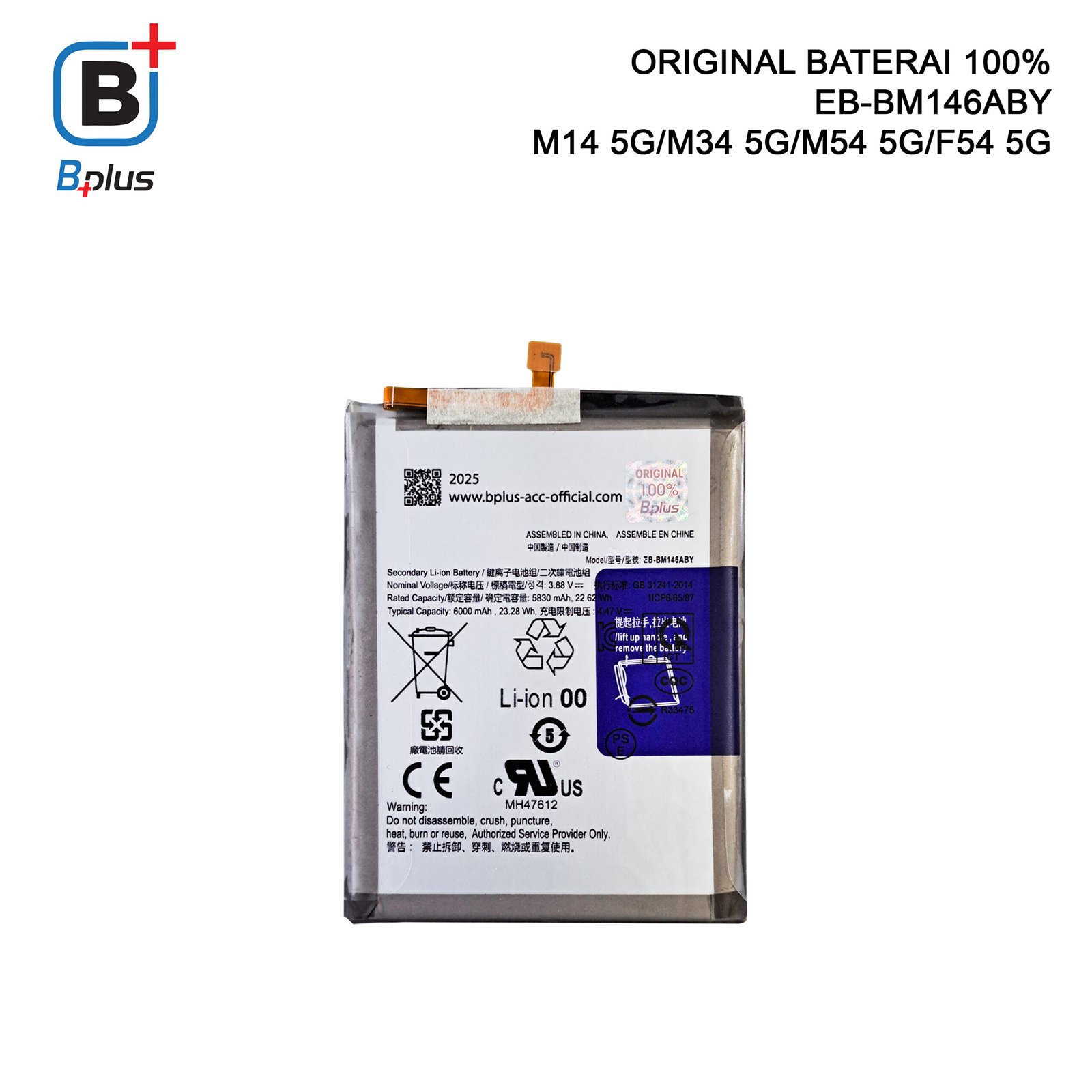 BATERAI SAMSUNG EB-BM146ABY / M14 5G/M34 5G/M54 5G/F54 5G ORIGINAL BPLUS 100%