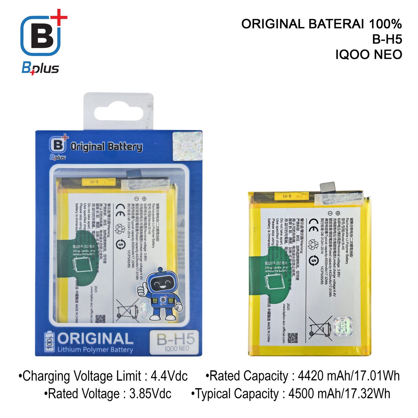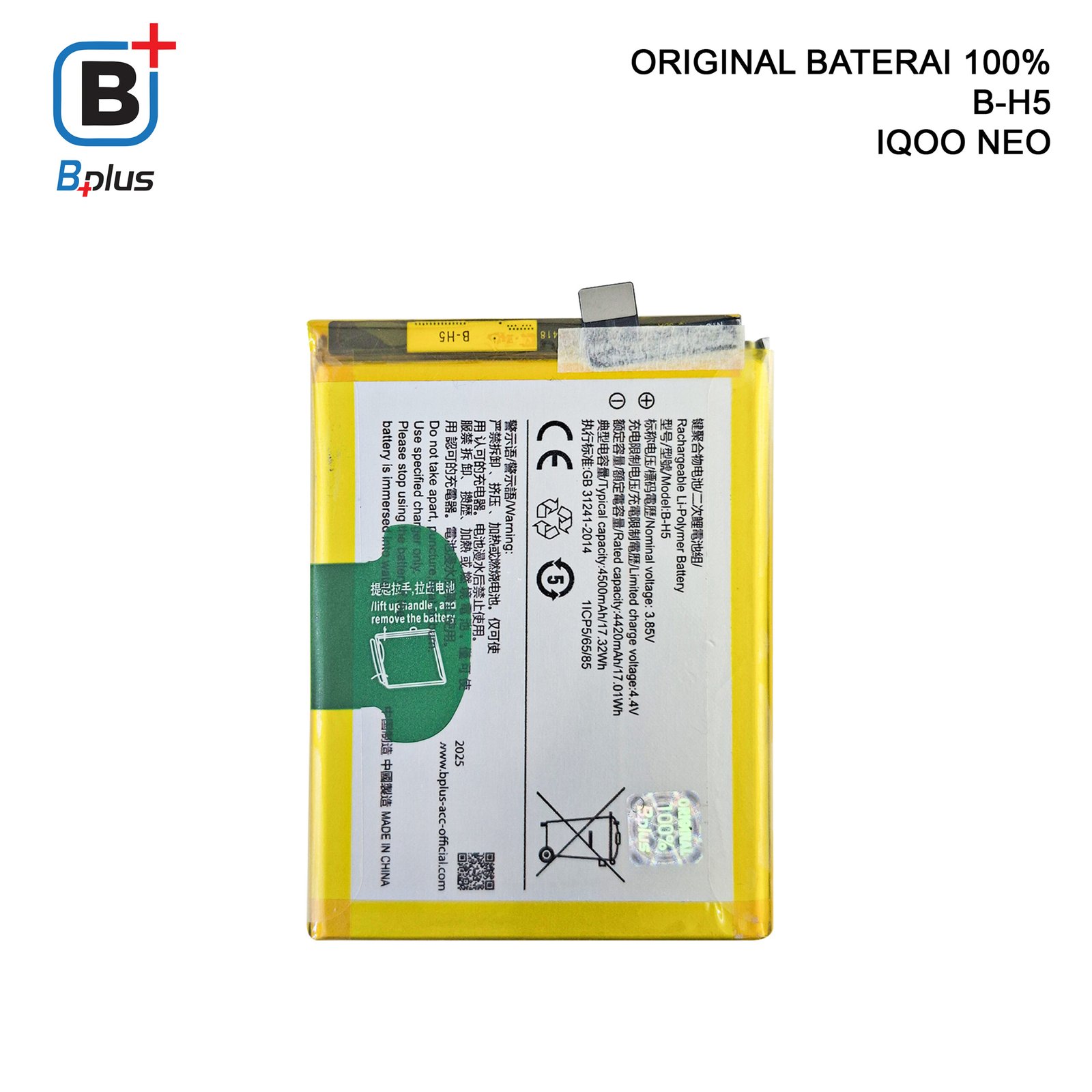 BATERAI VIVO B-H5 /IQOO NEO ORIGINAL BPLUS 100%