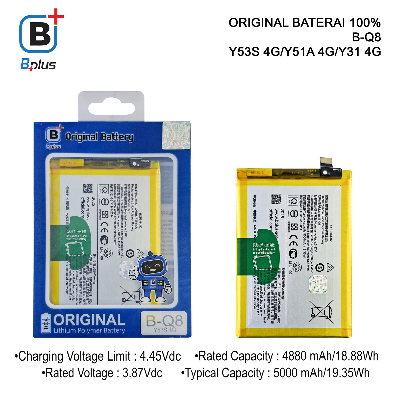 – Baterai VIVO B-Q8 / Y53S 4G/Y51A 4G/Y31 4G
