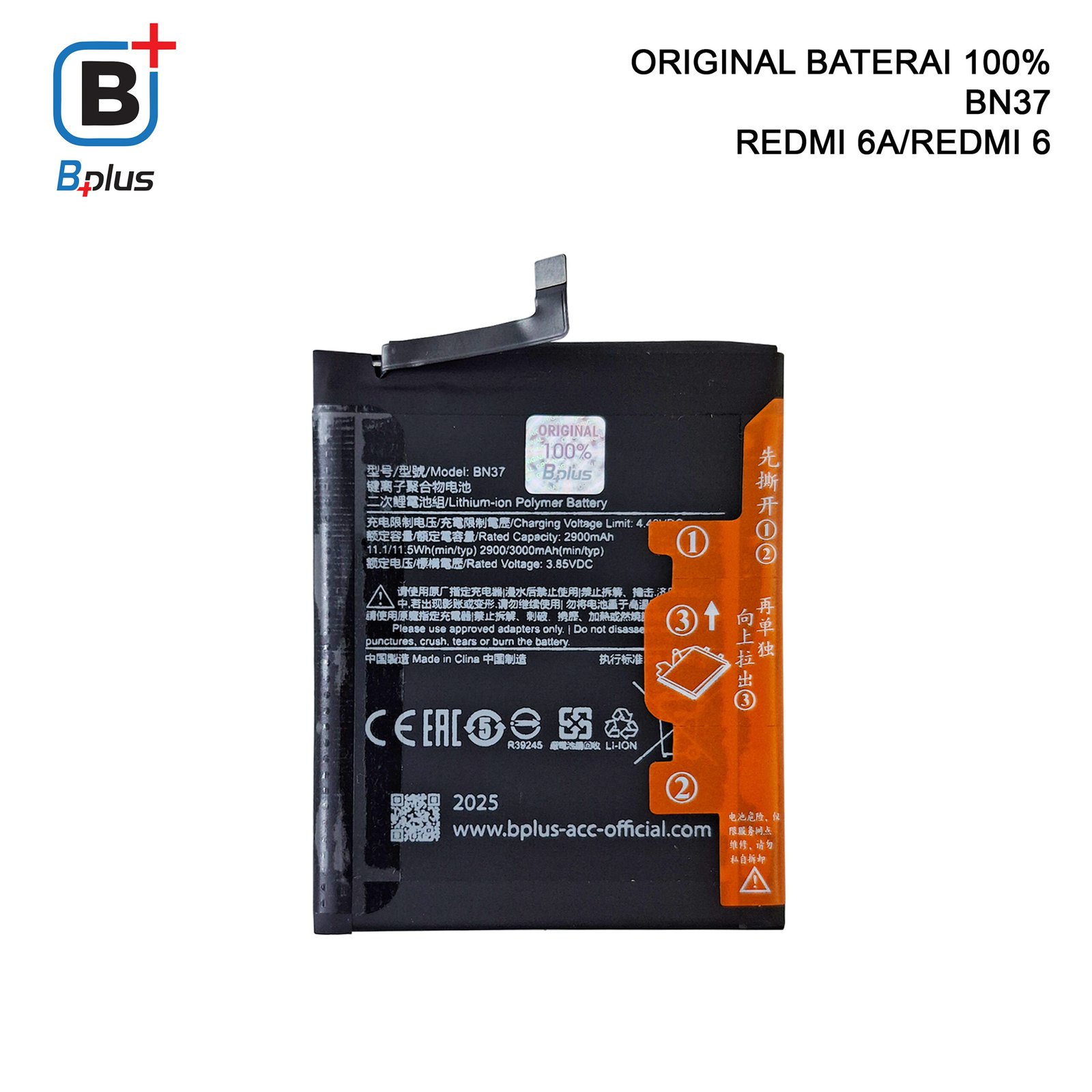 BATERAI XIAOMI BN37 / REDMI 6A/REDMI 6 ORIGINAL BPLUS 100%